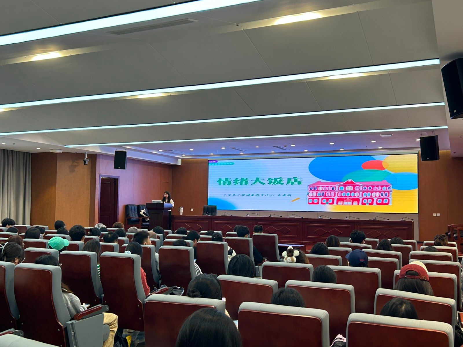 讲座伊始,王嘉丽结合新生的适应压力,以“情绪大饭店”切入,强调科学认识和管理情绪是维护心理健康、顺利成长的重要基础,随后,她重点讲解 “认知行为三角理论”,用通俗语言和案例阐释认知、行为、情绪三者相互关联的动态循环,让抽象理论具象化,帮助同学们理解。在此基础上,她针对大学生常见的 “愤怒”“抑郁”“焦虑” 三种情绪,分别剖析典型状态,并给出实用调节方法。讲座中,她还与同学们进行了实时互动交流。同学们表示,讲座内容实用,让自己明晰了情绪管理方法,将运用所学保持积极心态。