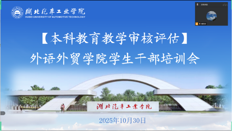 为扎实推进迎评促建工作,激活学生干部 “领头雁” 作用,10月30日晚,外语外贸学院召开本科教育教学审核评估学生干部培训会,会议由学工办主任魏院珍主持,全体学生组织干部、班长、团支书近90人参会。